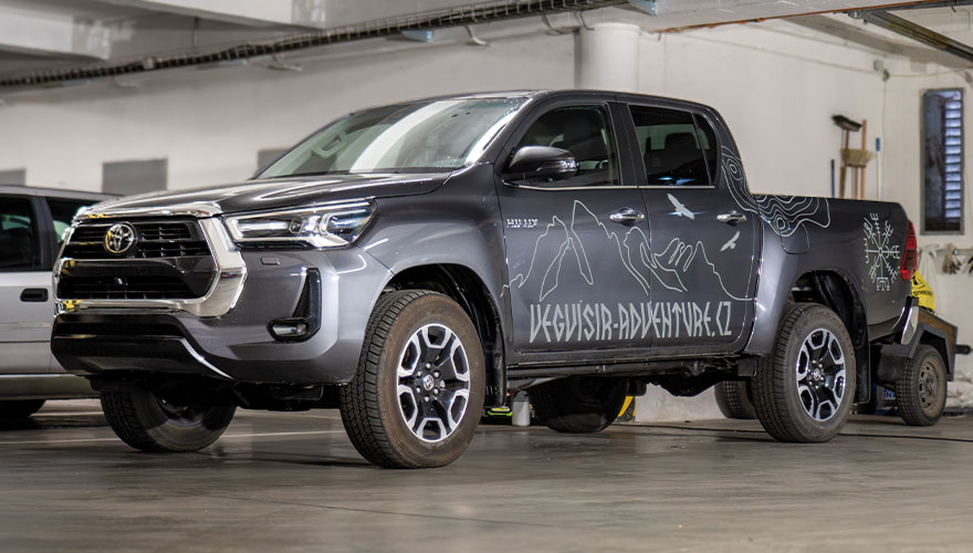Polepy na bok auta se siluetou hor a nápisem 4x4.